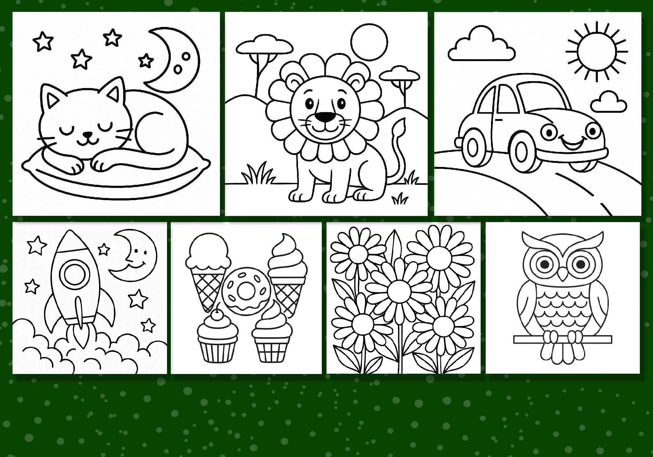 Generate consistent, high-quality coloring pages and covers perfectly sized for A4 (8.5 in × 11 in) or square (8.5 in × 8.5 in). No designer needed.